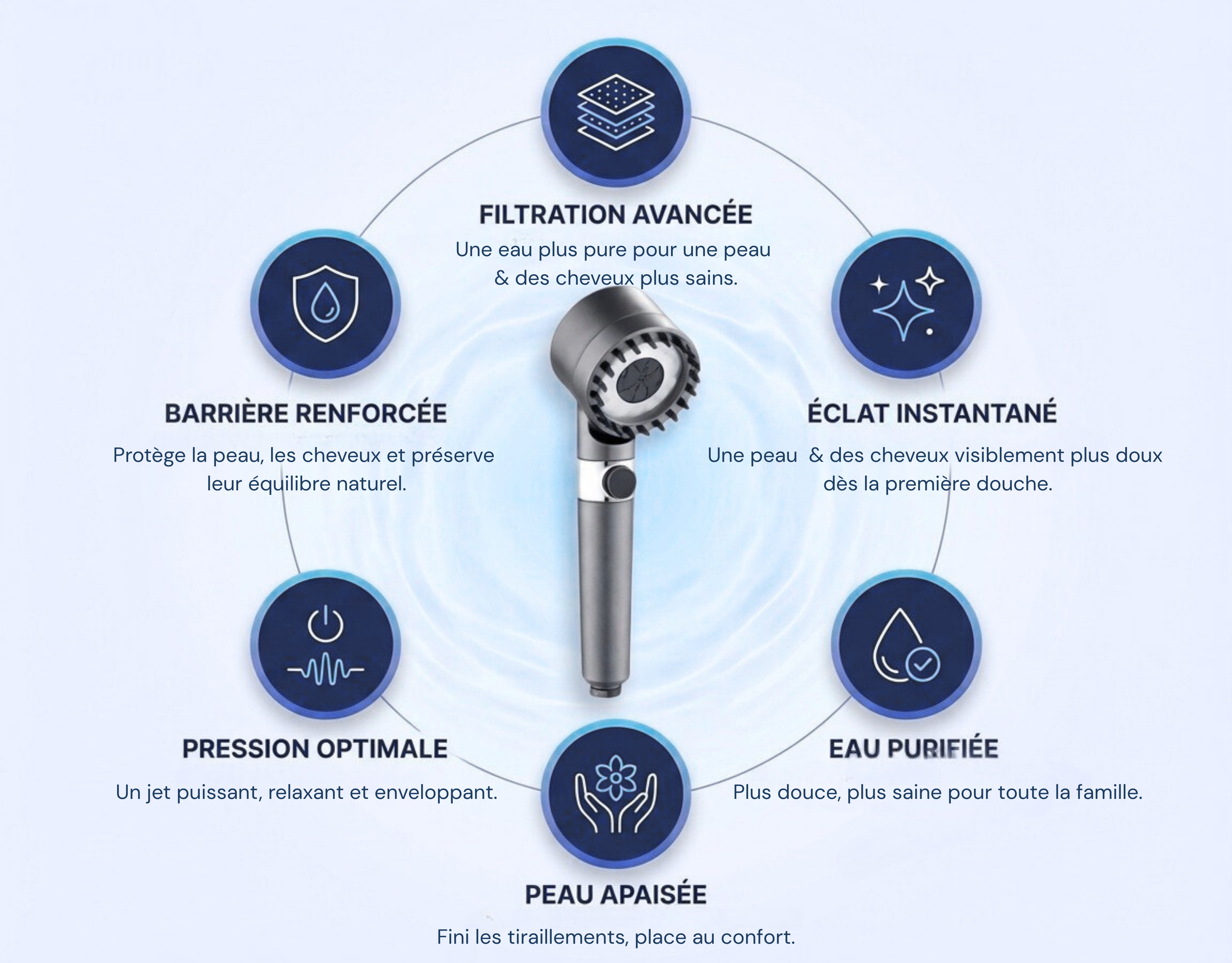 - Profitez dès la première douche d’une eau plus agréable et de sensations de bien-être sur votre peau et vos cheveux